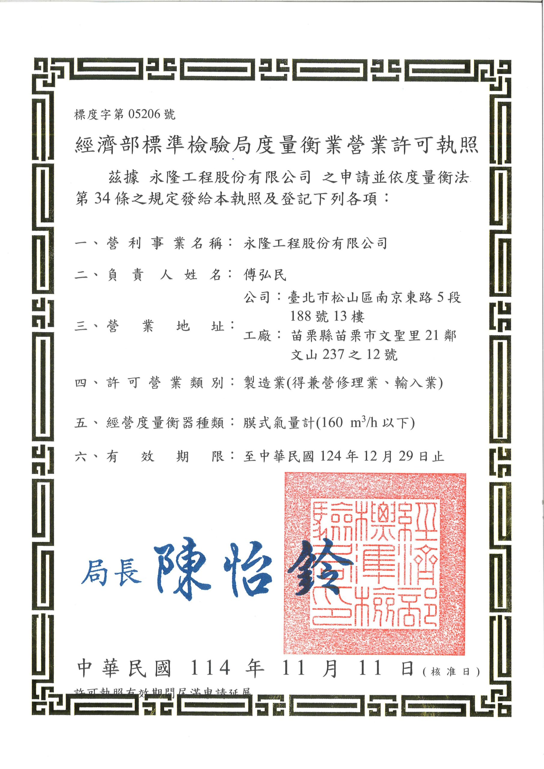 度量衡自行檢定許可執照